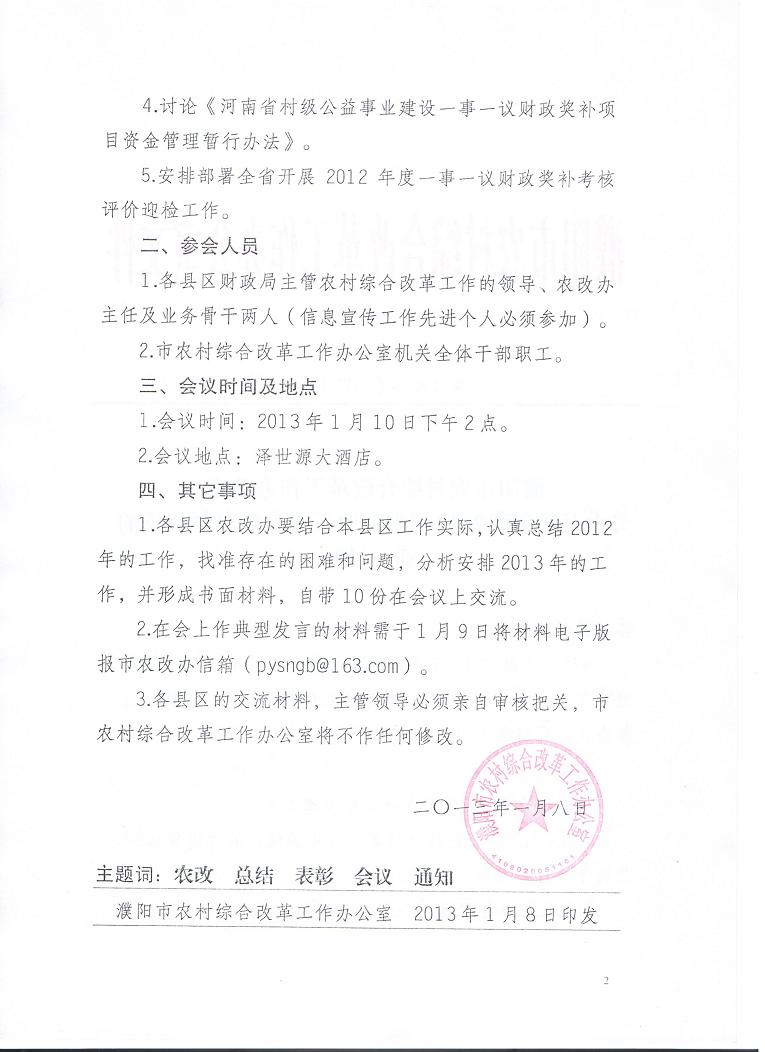 关于召开全市2012年度农改工作总结表彰会议的通知